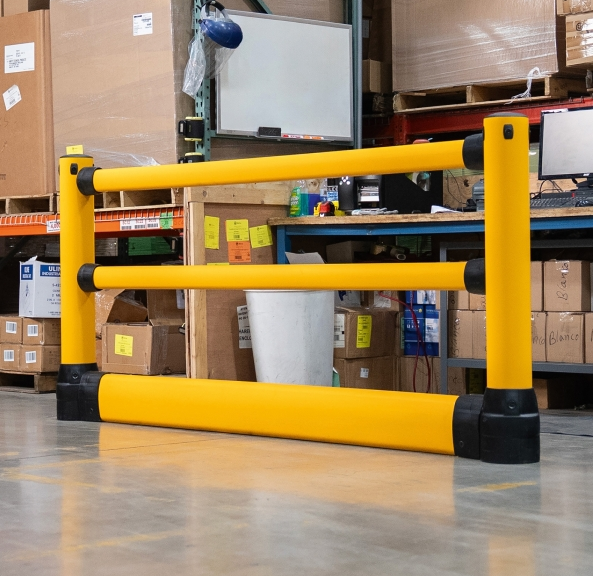 Ochranné zábradlí  FLEX+ S-Line poskytuje ochranu všude, kde se protínají chodci, vnitřní provoz a pracovní prostory. Zajišťuje bezpečné oddělení chodníků, příjezdových cest a pracovních prostor a používá se ve skladech, výrobních zařízeních a logistických centrech podél dopravních tras, v prostorách pro vychystávání objednávek a na pracovištích. Důraz je kladen na jasně viditelné vymezení mezi dopravními trasami a pracovními zónami. Místo pevných bariér se systém spoléhá na řízené pohlcování: V případě nárazu zábradlí absorbuje energii, rozloží síly po celé ochranné linii a poté se automaticky vrátí do původního tvaru. Tím se zachovává jak ochranná funkce, tak viditelnost – i po kontaktu.