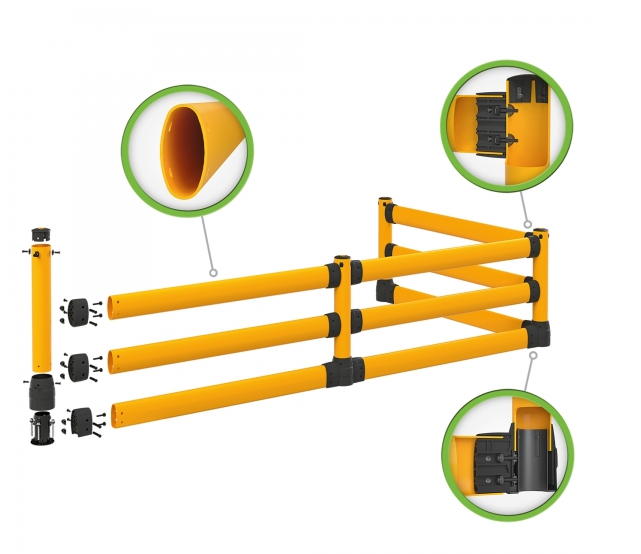 Bariéra L-Line poskytuje ochranu ve výšce vozidla a je ideální pro oblasti bez významného rizika podjetí. Používá se podél dopravních tras, uliček, pracovišť, strojních prostor a překládacích zón ve skladech, logistice a výrobním prostředí. Místo pevné bariéry využívá FLEX+ řízenou absorpci: Systém absorbuje energii nárazu, rozkládá síly po celé ochranné linii a poté se automaticky vrací do původního tvaru. Tím je zajištěno, že dopravní trasy zůstanou bezpečné, ochranné linie funkční a procesy stabilní – i po nárazu. Polymerové příčné nosníky tvoří souvislou ochrannou linii řady L. Tlumí nárazy, absorbují energii a zabraňují poškození vozidel, regálů nebo strojů. Sloupky absorbují přenášené síly a zajišťují stabilitu po celé délce. Výsledkem je menší poškození, nižší náklady na opravy a zvýšená bezpečnost procesů a personálu. Technologie připojení FlexLink je srdcem systému. Zajišťuje, aby síly nebyly soustředěny v jednom bodě, ale aby byly rovnoměrně rozloženy. Tím se snižuje namáhání kotevních bodů a země, a prodlužuje se životnost celé bezpečnostní bariéry. Výsledkem jsou žádné trhliny v zemi, žádné uvolněné sloupky a trvale stabilní bezpečnostní bariéry. Základna FLEX+ spojuje sloupky s zemní kotvou Base a slouží jako nárazuvzdorný vnější plášť. Zemní kotva FLEX+ Base kombinuje robustní ukotvení v betonu s pryžovými tlumiči absorbujícími sílu. FLEX+ je navržen pro každodenní použití. I po opakovaných nárazech zůstává systém funkční. Žádná trvalá deformace. Odolný plast díky vysoké elasticitě. To výrazně snižuje prostoje a následné náklady. Řada L-Line je obzvláště vhodná pro oblasti, kde je vyžadována jak účinná fyzická ochrana, tak jasně viditelné vymezení: oddělení a zabezpečení dopravních a pracovních prostor, uliček a strojních prostor. Typickým příkladem je sklad s vysokým provozem vozidel, úzkými průchody a přilehlými pracovišti. Možnost rozšíření pomocí doplňujících dílů