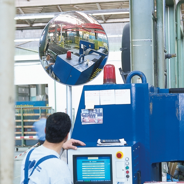 Pozorovací zrcadlo je vnitřní pozorovací a inspekční zrcadlo vyrobené z akrylového skla. Ideální do prostor s pěším provozem. Zabraňuje nehodám a odrazuje od krádeží. Osvědčené po mnoho let ve výrobních halách, skladech, samoobslužných prodejnách, prodejních plochách a veřejných zařízeních. • velmi lehké, bez rizika zranění • extrémně odolné proti nárazu • vynikající optické vlastnosti • silný širokoúhlý efekt • doporučeno pro krátké pozorovací vzdálenosti a střední až velká pozorovací pole • montáž na rovné povrchy (např. stěny, trámy, nosníky) pomocí dodaného držáku - snadné nastavení na požadovaný pozorovací bod