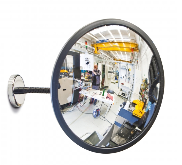 Pozorovací zrcadlo je vnitřní pozorovací a inspekční zrcadlo vyrobené z akrylového skla s magnetickým úchytem. Ideální do prostor s pěším provozem. Zabraňuje nehodám a odrazuje od krádeží. Osvědčené po mnoho let ve výrobních halách, skladech, samoobslužných prodejnách, prodejních plochách a veřejných zařízeních. • uchycení na rovné kovové povrchy • lehké, odolné zrcadlo proti nárazu • vynikající optické vlastnosti • silný širokoúhlý efekt • doporučeno pro krátké pozorovací vzdálenosti a střední až velká pozorovací pole • zrcadlové pouzdro je vyrobeno z ABS plastu, proto je vhodné použití v interiéru i v proti větru chráněném exteriéru Nastavitelný držák (husí krk) cca 200mm od podkladu Průměr 450mm Max. vzdálenost pozorovatele od zrcadla (m) - 5m Hmotnost: cca 3kg