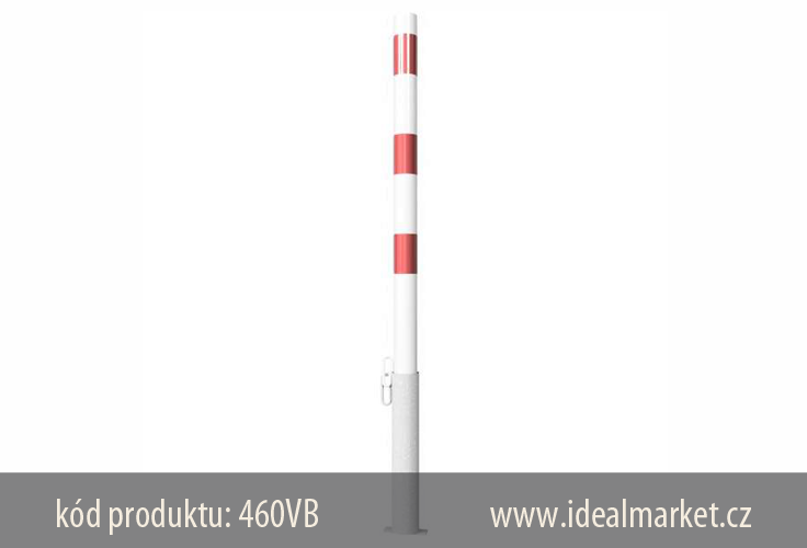 zábrana vjezdu Ø60x2,5 mm, bílo-červená, výsuvná, upevnění do zemní objímky, délka zábrany nad zemí 900mm, uzamčení na visací zámek, bez osy, kód produktu 460VB, www.idealmarket.cz